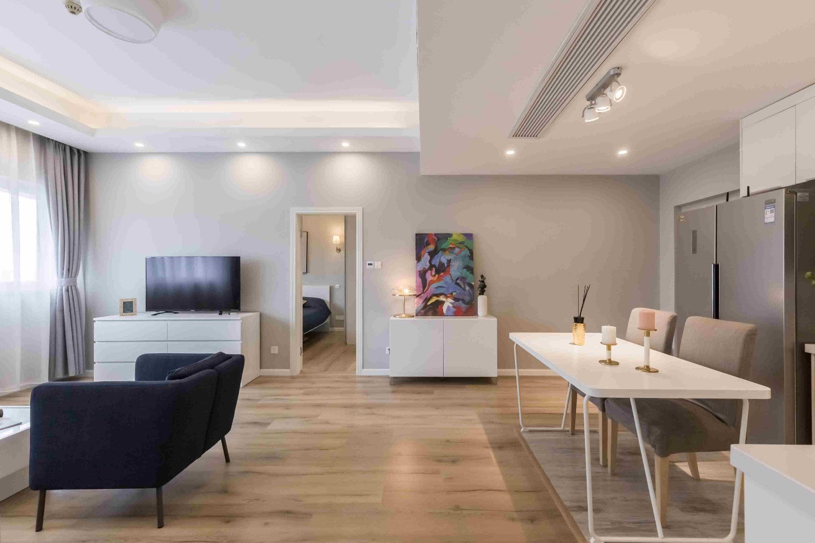 2bedrooms/2bathrooms/living room/open kitchen/bacony